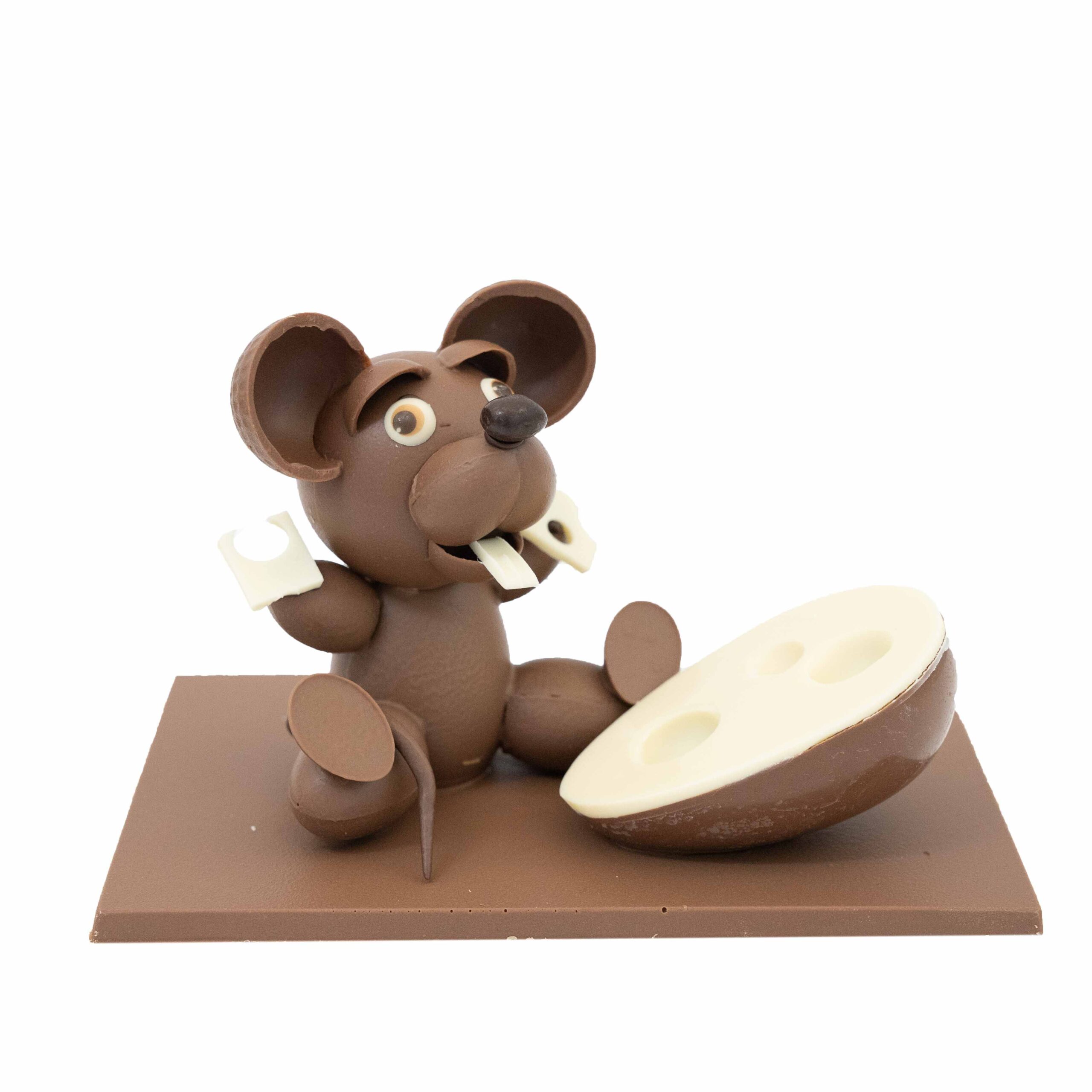 Mona pequeña de Ratón. Disponible en 2 colores: chocolate negro y con leche.