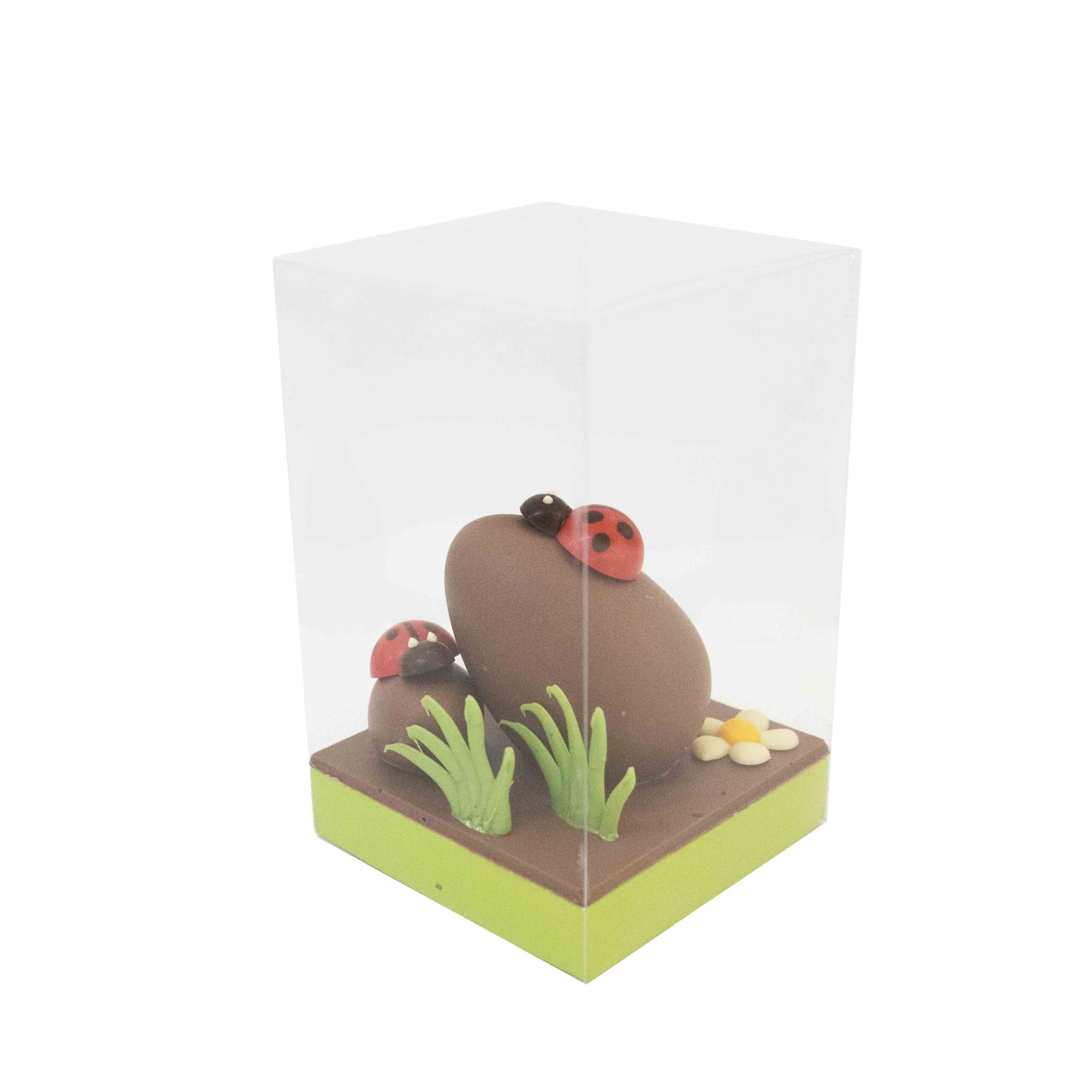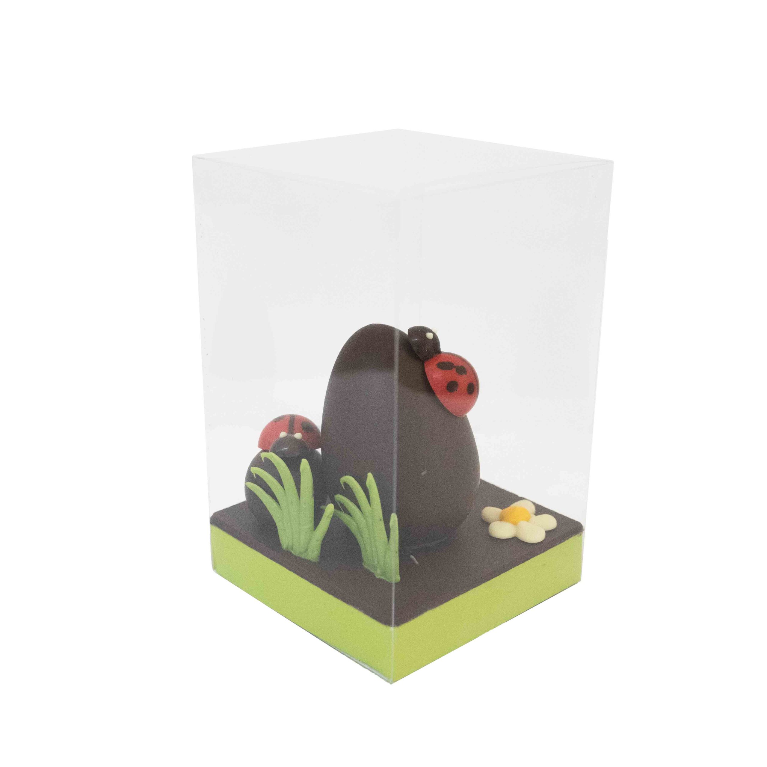 Mona pequeña de Pareja de mariquitas. Disponible en 2 colores: chocolate negro y con leche.