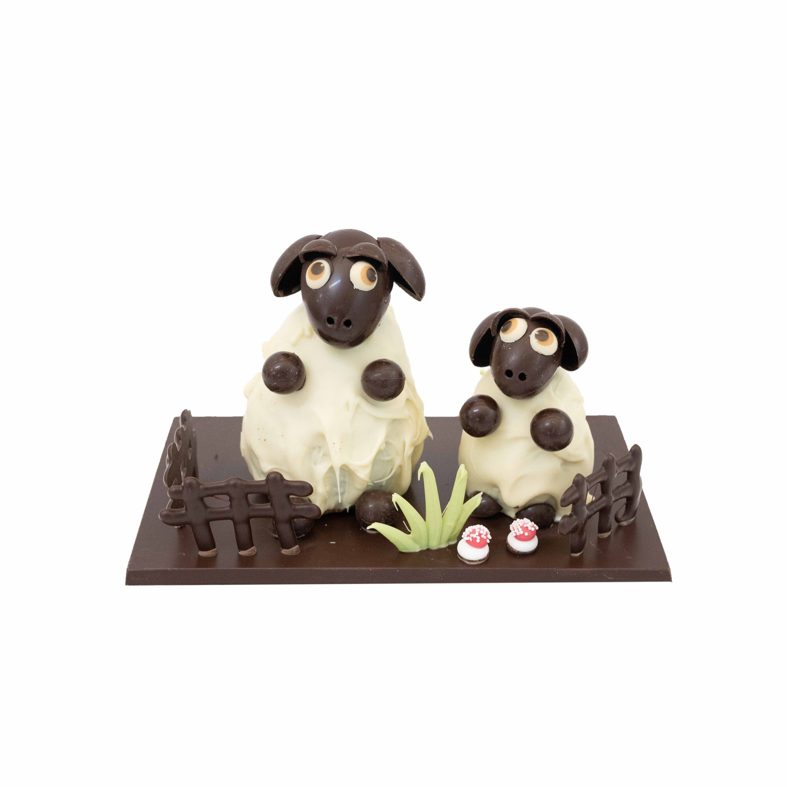 Mona pequeña doble de Pareja de ovejitas. Chocolate negro y con leche.